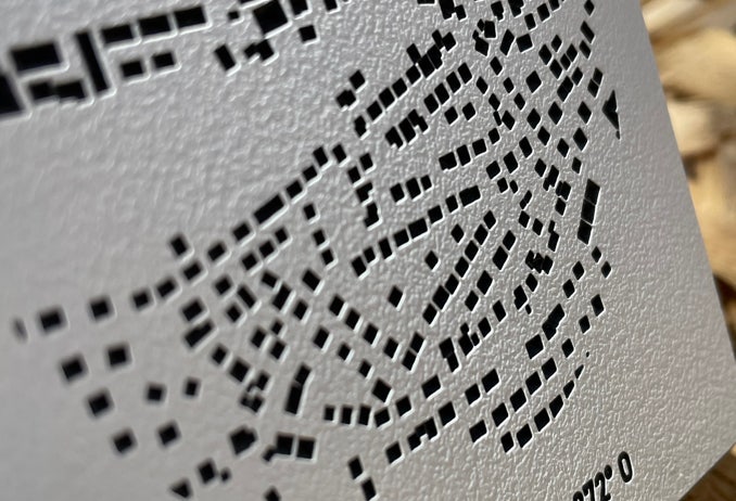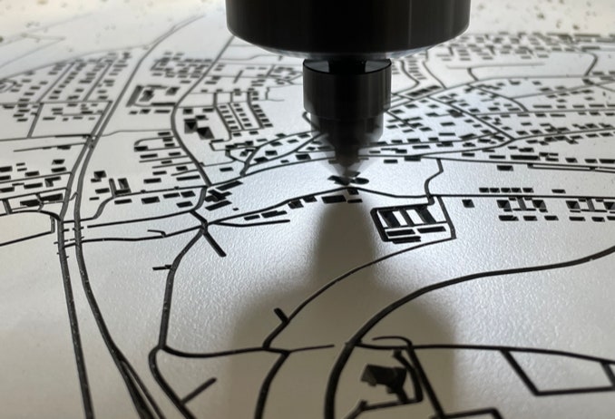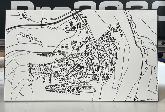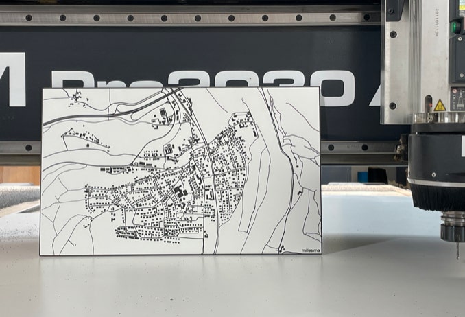 Wir fräsen Ihren Kartenausschnitt in eine HPL Platte.